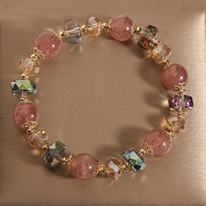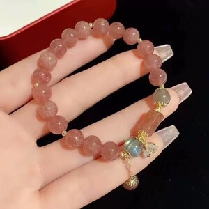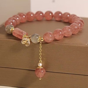 人気の甘いライトラグジュアリーストロベリークリスタルフラワーブレスレット、親友のための多用途な気質ペンダント、ガールフレンドのためのブレスレット