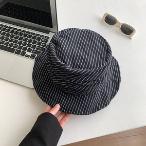 日本製ストライププリーツフラットトップフィッシャーマンハット女性用夏綿とリネンの薄い通気性のある芸術的な気質盆地帽子サンハット