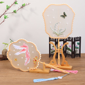 シルクファン diy 材料パッケージ子供の手作りアンティークシルクボールファンスケルトンファンフレーム蚕アクセサリー