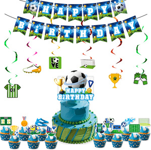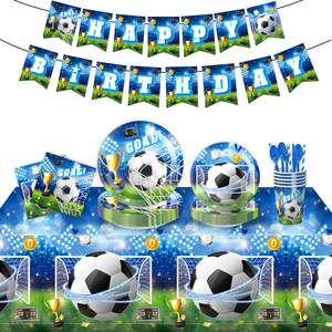 新しいブルーサッカーテーマワールドカップスポーツ競技食器使い捨て紙コップペーパータオルフラグテーブルクロス装飾