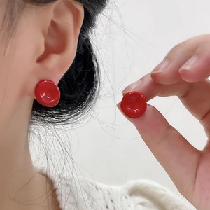 ニッチでキュートで遊び心のあるクリームソリッドラウンドイヤリング925シルバー針小さくてシンプルなイヤリングレディースイヤリング新しいトレンド