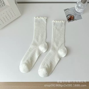 女性用夏用薄手ソックス、無地中空メッシュソックス、白い消臭通気性のある女の子用レースパイルソックス