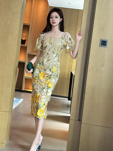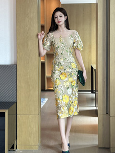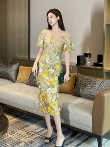 ローブドレススカート 2025 夏の新作レディースフレンチ立体フラワーデザインメッシュドレス 9032