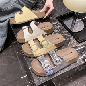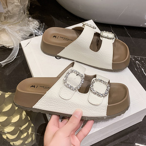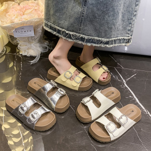 女性用ビルケンシュトックサンダル、夏のアウターウェア、2025年新作、スカート付き、高級感、超人気、美しいフレンチスタイルの厚底ビーチサンダル