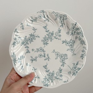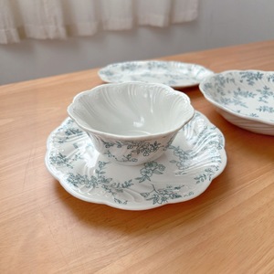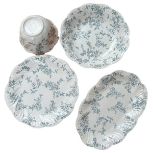 フレンチレトロミストブルーフルフラワーレリーフセラミック食器セラミックプレートデザートプレートディナープレートボウル