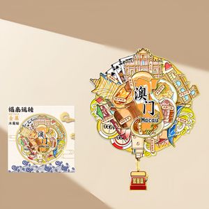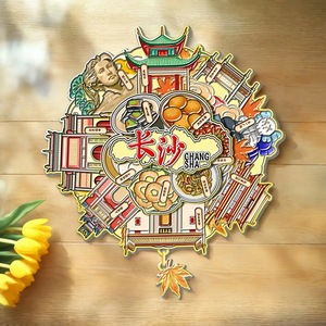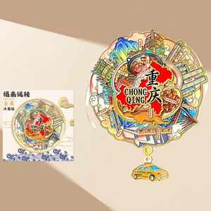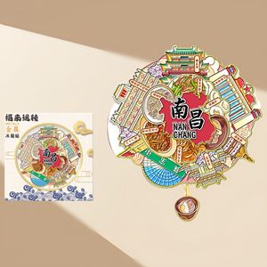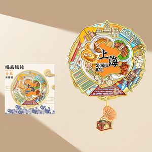 中国都市の文化的で創造的な金属製ターンテーブル冷蔵庫マグネット立体的な国民的トレンドマグネット強力な吸引国民風回転景勝地のお土産