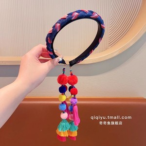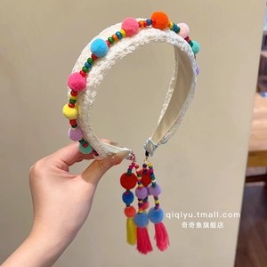 子供のレトロ人気のヘアプレスヘッドバンドヘアバンド女の子のエスニックスタイルのヘアアクセサリー 2025 新しいファーボールタッセルヘッドバンド女性