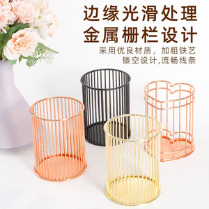 クロスボーダー北欧スタイルのアイアンアート収納バレルデスクトップオフィス収納バレルオーガナイザーバスケットアイブロウペンシルメイクブラシバレル多機能
