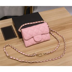 夏のクラシックな小さな香りの菱形本革キャビアカードホルダー女性の小銭入れミニバッグチェーンショルダーメッセンジャー