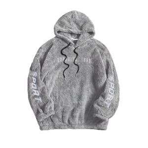 クロスボーダーフード付き豪華な模造ベルベットポリエステル生地の毛皮のようなスウェットシャツ、男性と女性、ヨーロッパとアメリカの学生のための秋と冬の暖かいジャケットグレー