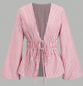 アマゾン貿易卸売 2025 夏の新しいヨーロッパとアメリカンスタイルのストライプのリボン装飾カジュアルトップ
