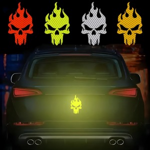 国境を越えた人気のクールな炎のスカルテール超反射警告ステッカー夜間運転安全警告ステッカー