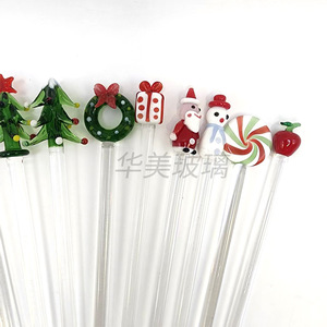 源头工厂圣诞系列玻璃搅拌棒多种款式可选圣诞老人雪人礼包搅拌棒