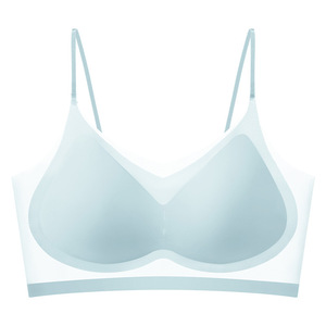 夏超薄型アイスシルクシームレス下着女性のスパゲッティストラップサスペンダー下着薄型通気性アイスシルク美しいバックスリーピングブラジャー