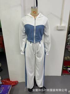 2025 クロスボーダーヨーロッパとアメリカンスタイルの女性のスポーツとレジャースウェットシャツスーツデニムスプライシングフード付きジッパーパンツ