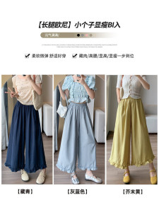 女性用ホワイトイヤリングキュロット2025新しい夏薄いハイウエストカジュアル怠惰なルーズワイドレッグ小柄な人向け