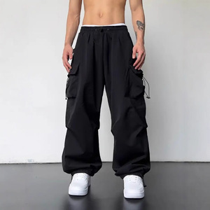 2025 夏の新アメリカン速乾性オーバーオールメンズパラシュートパンツハイウエストワイドレッグカジュアルスポーツパンツ