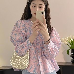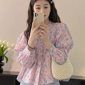 2025年春の新作、ニッチな着こなし、高級感、軽い贅沢、年齢軽減、女性向けの西洋風ピンクプリントシャツ