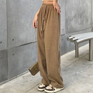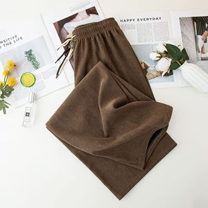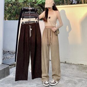 対外貿易人気のヨーロッパ綿ベルベットワイドレッグパンツ女性用 2025 夏の新スタイル多用途痩身ハイウエストコーデュロイストレートパンツ