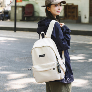 バックパック女性無地シンプル多用途スクールバッグ韓国スタイル原宿カレッジスタイル大容量コンピュータバッグカップルバックパックトレンディ