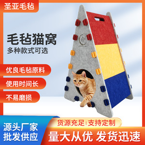 三角猫の巣 猫スクラッチボード 垂直一体型猫爪研ぎツール 耐摩耗性で欠けにくい ペットハウス フェルト猫の巣