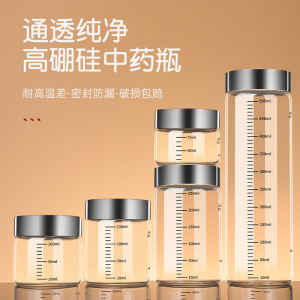 批发中药分装瓶可加热杯子高硼硅玻璃密封储存罐带刻度牛奶杯