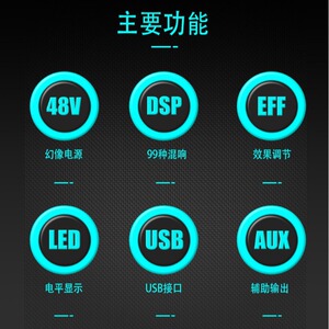 6路直播K歌调音台48V供电无线蓝牙伴奏内置USB声卡小型演出混音器