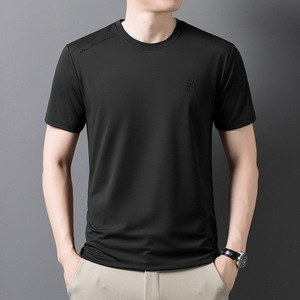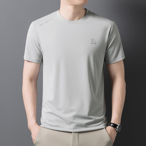 ラウンドネック Tシャツメンズ夏の新しい薄いアイスシルクルーズ通気性カジュアルファッションハイエンド半袖メンズ Tシャツドロップシッピング