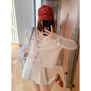 韓国白薄い日焼け止めニットカーディガン女性の夏のサスペンダーアウターブラウスショートコートトップ