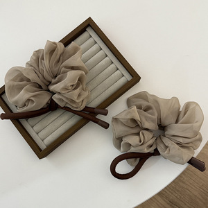 韓国のレイジースタイルの軽いガーゼリボン、柔らかくふわふわでボリュームのあるロープーティーポニーテール、高級ヘアロープ
