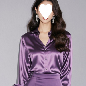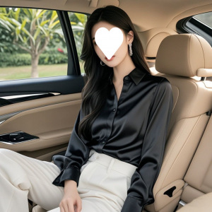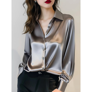 2025 春と秋の新ハイエンドグレーアセテートサテンシャツ女性の長袖シックなフレンチシルクプロフェッショナルシャツ