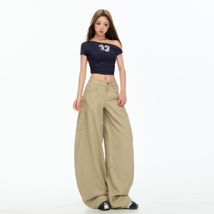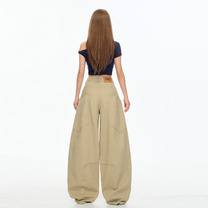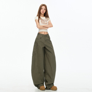 カーキ色のカーブドジーンズ、女性用アメリカンスタイル、大きなポケット付きワイドレッグワークパンツ、ゆったりとしたロング丈のカジュアルパンツ、秋冬向け