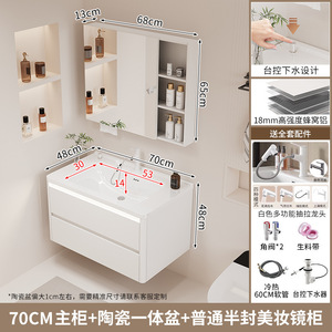 E4 ホワイト 70cm 普通ミラーキャビネット アークセラミック一体型洗面器 [台湾管理排水]