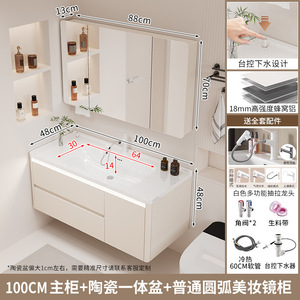 E2 ホワイト 100cm スマートミラーキャビネット アークセラミック一体型洗面器 [台湾管理排水]