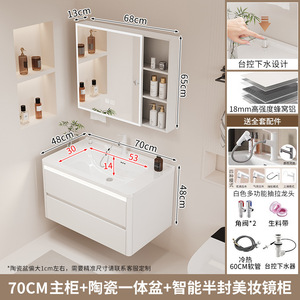 E4 ホワイト 70cm スマートミラーキャビネット アークセラミック一体型洗面器 [台湾管理排水]