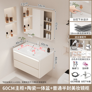 E4 クリーム色 60cm 普通ミラーキャビネット アークセラミック一体型洗面器 【台湾管理排水】