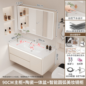 E4 ホワイト 90cm スマートミラーキャビネット アークセラミック一体型洗面器 [台湾管理排水]