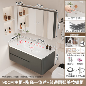 E4 グレー 90cm 普通ミラーキャビネット アークセラミック一体型洗面器 [台湾管理排水]