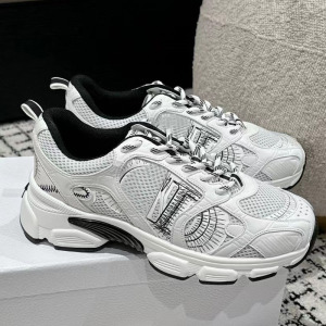 D家网面运动情侣老爹鞋热巴同款跑步鞋撞色厚底女鞋系带外贸男鞋