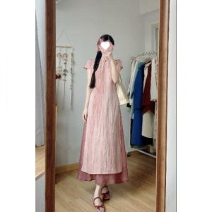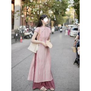 プラスサイズのファットガール新しい中国風アジアその他テンセル通気性夏の新しいチャイナドレスワイドレッグパンツ 2 点セット