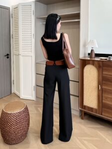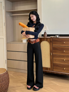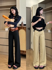 ドレープスーツパンツカジュアルパンツレディース夏薄手2025新作ワイドレッグパンツゆったりフロアレングスフレアパンツベルト
