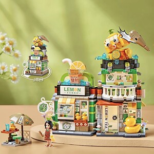 LOZ ビルディングブロック折りたたみストリートビューシリーズグルメストリート 1295 カタツムリヌードルショップレモンティーショップ diy 手組み立ておもちゃ