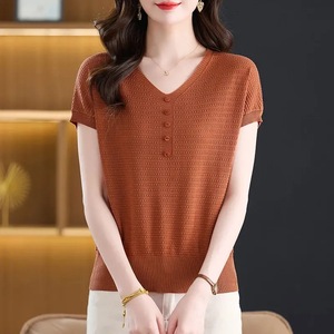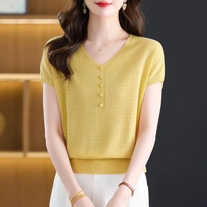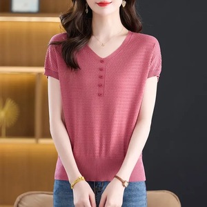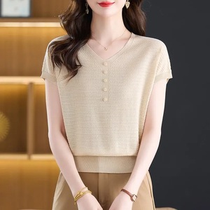 【在庫あり・即出荷】夏新作無地リヨセルテンセルVネックTシャツレディーススタイルゆったり着痩せニットショートパンツ
