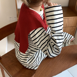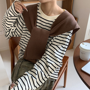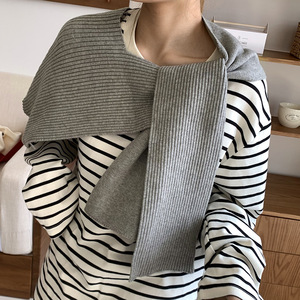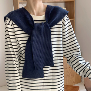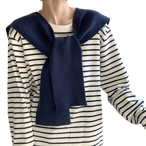 ショールニットの高級感のある新しい無地の万能ソフトワックスのようなゆったりとした長袖Tシャツショールと小さなチョッキ