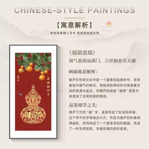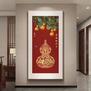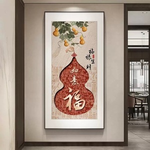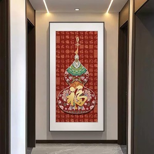 背景墙新中式玄关装饰画入户挂画喷绘客厅铝合金框油画布壁画画