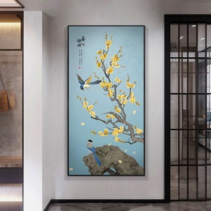 背景壁新しい中国風の玄関装飾絵画エントリーテクスチャ吊り絵画壁画スプレー塗装油絵キャンバス絵画アルミ合金フレーム