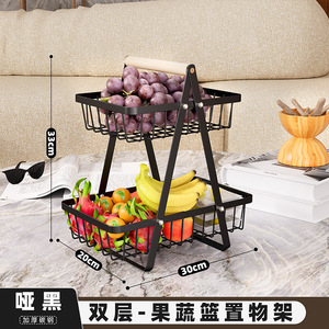二層多機能収納バスケットデスクトップ収納ラックスナック収納コーヒーテーブル二層フルーツバスケットテーブル二層収納