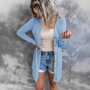 2025 春夏ヨーロッパとアメリカのクロスボーダー新アマゾンウィッシュレディースロングボタンソリッドカラーカジュアル長袖カーディガン女性用