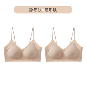 【ソースセレクション2点セット】インビジブルファイングリッターショルダーストラップリキッドファンデーションシームレス下着レディース極薄クールソフトサポートブラ