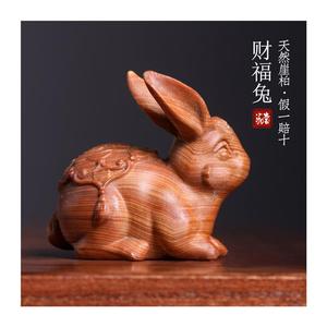 天然崖柏木雕刻财福兔子摆件十二生肖兔子吉祥物小摆件手把件兔子